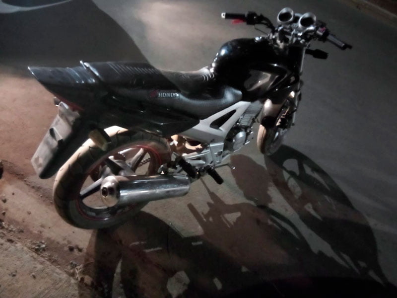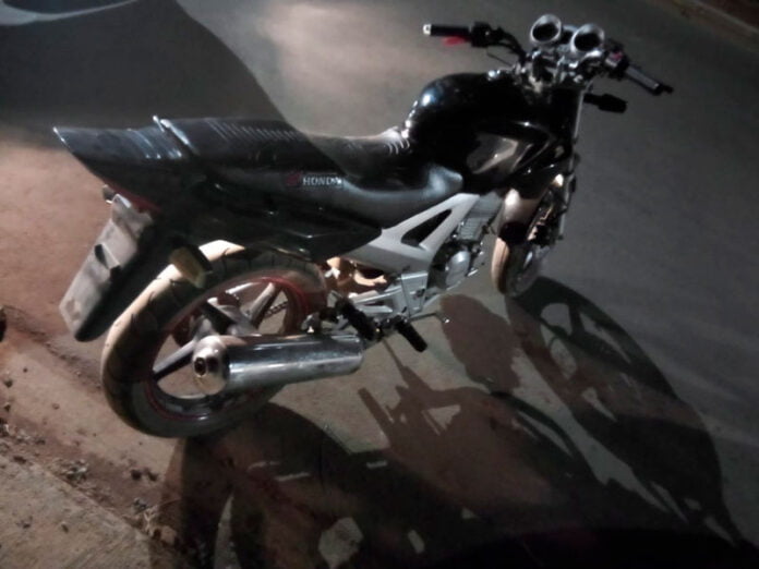 Na segunda-feira, dia 8, a Polícia Militar foi acionada para atender uma ocorrência sobre veículo localizado no Jardim Canaã. No local, havia uma motocicleta Honda CBX 250 Twister de cor preta, sem placa de identificação e sem os dois espelhos retrovisores.