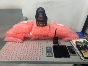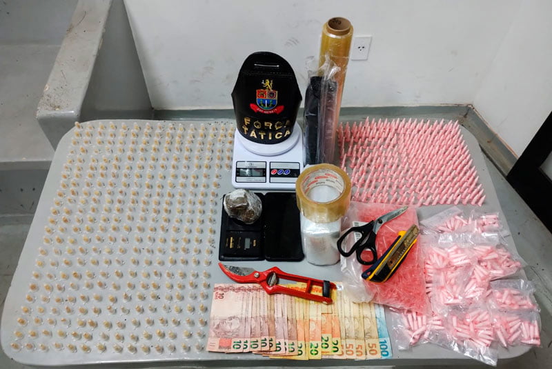 O outro flagrante ocorreu no bairro Cidade Nova, onde foram apreendidas duas balanças, 407 eppendorfs na cor rosa vazios e outros apetrechos que indicavam a traficância, além de 0,254 kg de cocaína, 0,234 kg de crack e 0,072 kg de maconha.