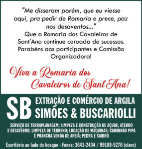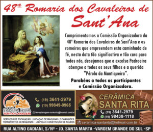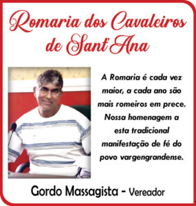 Sobre a Romaria de Sant’ Ana, foi enfática ao dizer que a Romaria da nossa cidade é uma das mais tradicionais, e que embora muitas coisas tenham mudado, não só aqui, mas em todas as romarias, ela sente que está perdendo um pouquinho da tradição, do foco, da real intenção que é a Romaria. “Eu sinto que a de Vargem ainda é uma das mais estruturadas e que ainda tem um propósito firme, vamos dizer assim. Então a gente vai na romaria em prol de Sant’ Ana e a gente consegue conscientizar mais o público a respeito disso”, afirmou.