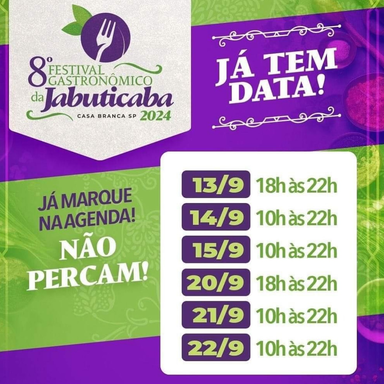 O Festival Gastronômico da Jabuticaba, de Casa Branca, que chegou este ano em sua 8ª edição, chega ao fim no domingo, dia 22.