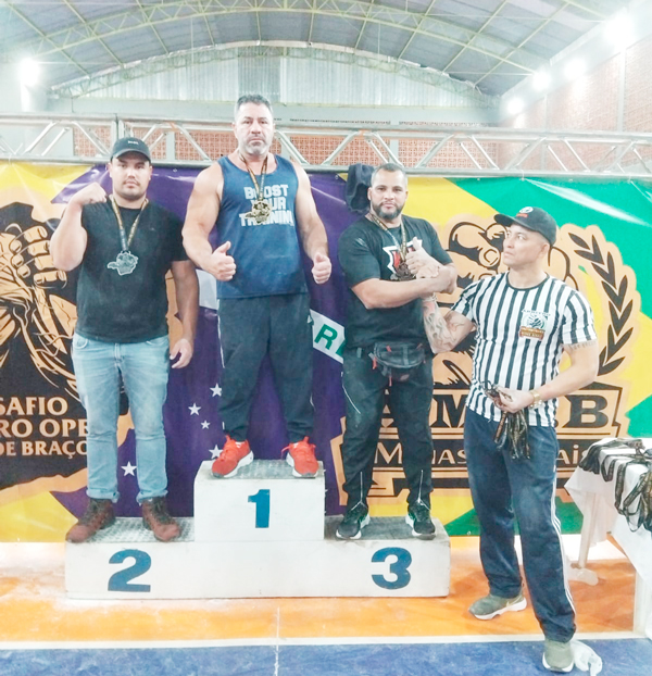 Legenda: Marcelo venceu na categoria 110 quilos nos dois braços