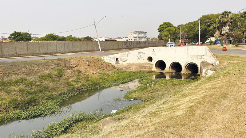 Conforme explicou o engenheiro Rodrigo Silva da prefeitura, as tubulações medem 2,5m de largura por 1,5m de altura e serão colocadas sob o asfalto ao lado do córrego, cortando a avenida e captando as águas represadas pela ponte, cuja tubulação existente não dá conta da vazão das águas quando chove muito.