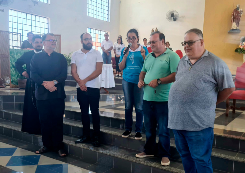 A coordenadora Juliana contou que antes de cada mistério teve um testemunho de cinco famílias que receberam a visita da imagem peregrina Nossa Senhora Aparecida do Encontro Mariano, trabalho feito com o terço dos homens da Paróquia Santo Antônio durante todo ano, com a imagem percorrendo as famílias.