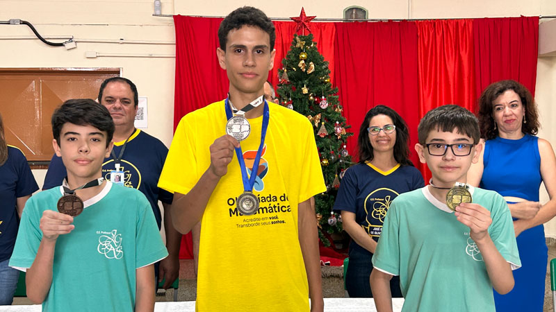 O aluno Lucas Roberto Pinto, de 12 anos, ganhou medalha de ouro. Ele estuda no 7º ano A e é aluno da professora Ana Célia Ferri. A medalha de prata foi para o aluno Vitor Henrique da Silva do 2° ano D (noturno), aluno da professora Sueli de Queiroz. A medalha de bronze foi para o aluno Pedro Henrique Felisberto, do 6°B, também aluno da professora Ana Célia Ferri.