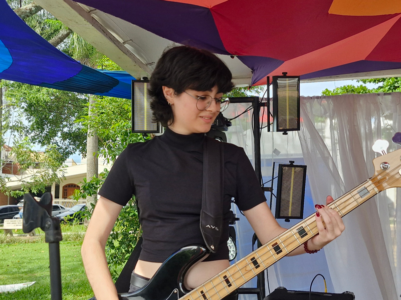 Para ela, a programação foi extremamente rica e diversificada. “Contamos com grafite ao vivo, pintura, exposições de quadros, desenhos que foram transformados em tatuagens, apresentações de bandas de sertanejo, pop rock nacional, pop, rock, rap, batalha de rima, além de poesia, palestra e teatro. O público também aproveitou a feira de artesanato, feira de plantas, feira de livros, doces artesanais e artes plásticas, além de food trucks variados, que serviram desde chopp e pastel até raspadinhas deliciosas. O espaço estava lindamente decorado, com tecidos vibrantes de lycra, pisca-pisca, balões e uma iluminação de palco impecável, que tornou o ambiente ainda mais acolhedor e mágico. Foi realmente uma experiência memorável para todos os envolvidos e para o público”, comentou.