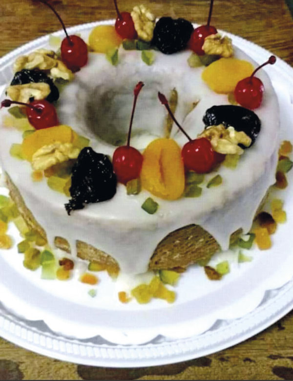 Bata na batedeira muito bem duas colheres de sopa de manteiga com o açúcar e um cálice de vinho do porto. Junte os ovos (um de cada vez) e depois a farinha de trigo, o fermento e as 2 claras em neve e junte à mão delicadamente. Coloque a massa em uma forma de buraco no meio untada e enfarinhada e leve ao forno pré-aquecido a 180º, entre 25 a 30 minutos. Para a cobertura, misture muito bem o leite gelado e o açúcar de confeiteiro. Para decorar, utilize frutas cristalizadas, ameixa, cereja, nozes e damasco.
