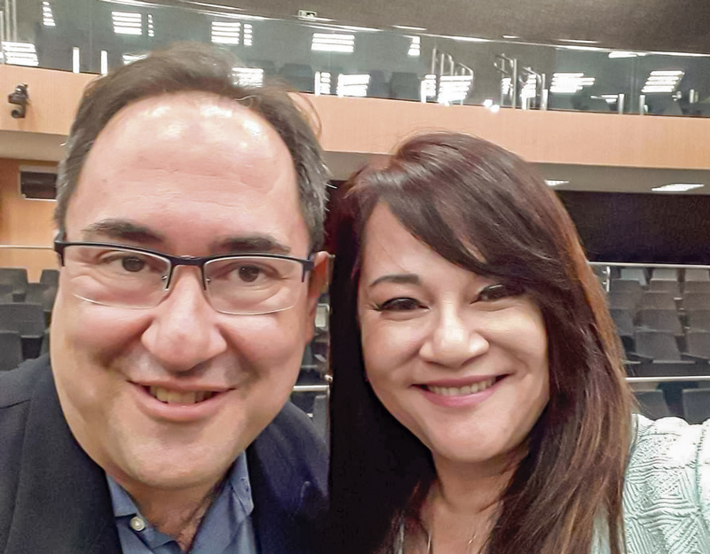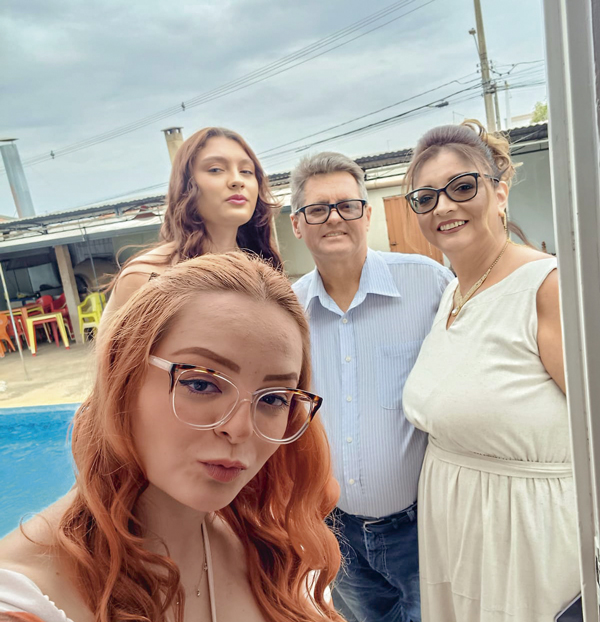 A professora Cláudia Rudoi Ronqui brinda a passagem do seu aniversário na quinta-feira, dia 26, quando recebe as felicitações do marido Márcio, dos filhos Yasmin, Jean Luca e Isabelly