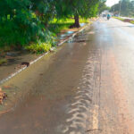 Cratera foi aberta na Av., próximo à rua que dá para o novo loteamento, fazendo com que água de esgoto vazasse