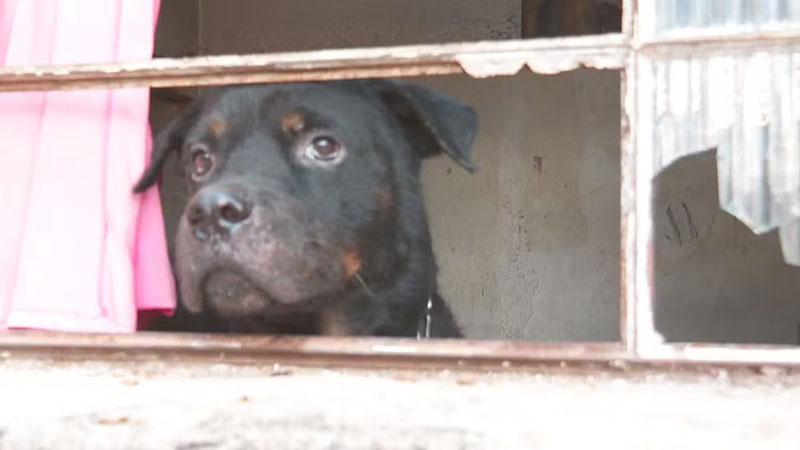 Imagens feitas pela reportagem da EPTV na quarta-feira, dia 19, registraram a casa em estado de abandono na Via Expressa Antônio Bolonha. Um dos cães está no quintal em meio ao mato alto.