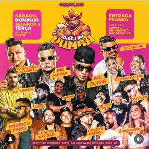 Se apresentam no evento MC Guimê, MC Paiva, DJ Henrique de Ferraz, DJ Japa NK, DJ Canellaz, DJ Tyler, DJ Bianquinha, as Gêmeas Castro, Russo & Daniel, Gustavo & Gabriel, Rodrigo Pires, Victor Lorenzo, Conexão 3G e Grupo Novidade.