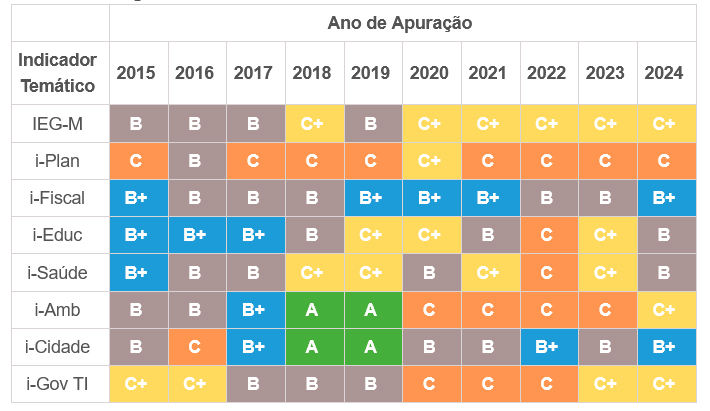 Assim, a prefeitura ressaltou que dos sete itens avaliados no IEGM pelo TCE, o município evolui de 2023 para 2024 em 5 itens. “Portanto, a evolução nos índices demonstra o quanto a prestação de serviços à população vem evoluindo no município e principalmente evoluindo nos índices de maior importância como: Saúde, educação, fiscal, cidade e ambiental. Com isso faltou muito pouco o município receber a média B no IEGM. Obviamente que precisamos evoluir no Planejamento e Governo/Tecnologia da Informação e estudos estão sendo feitos nesses sentidos”, explicou.