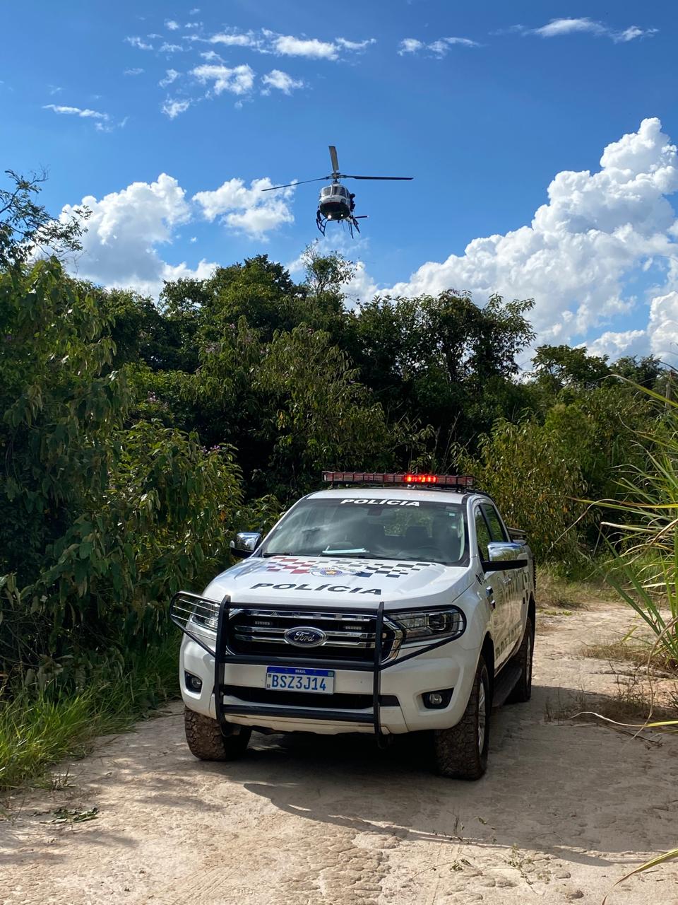 Durante o patrulhamento pela área rural, os policiais localizaram marcas de pneus na estrada de terra, que levaram a uma área de vegetação amassada. Após incursão a pé pela mata, a equipe localizou a Fiat Toro abandonada a cerca de 40 metros do acostamento. Foi realizada uma varredura no local, mas os suspeitos não foram encontrados.