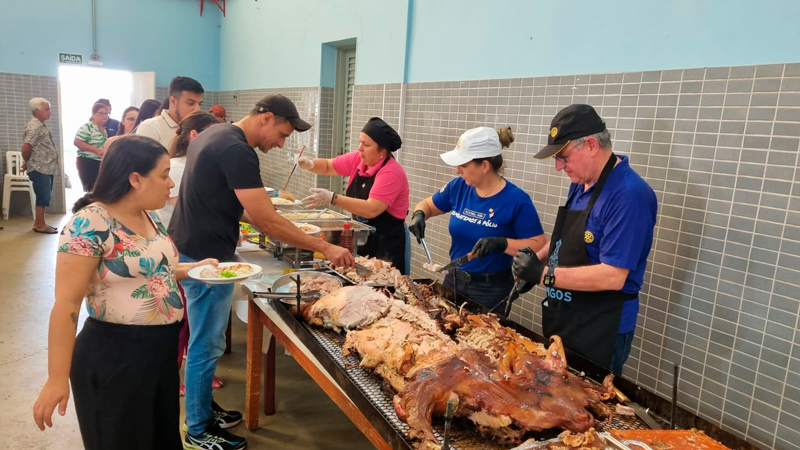 O porco a paraguaia, um prato preparado artesanalmente, de paladar irresistível, que desperta o sabor de carne suína defumada quando consumido, foi a principal atração do animado almoço realizado pelo Rotary Club de Vargem Grande do Sul, no último domingo, dia 27 de abril, que contou com a presença de mais de 200 pessoas. O evento, um almoço beneficente, foi realizado no salão da quadra da Associação de Pais e Amigos dos Excepcionais (APAE) e contou com música ao vivo.
