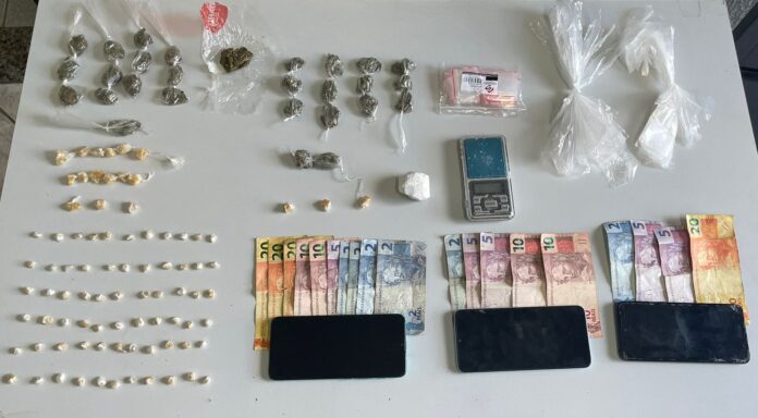 Indagados sobre o que faziam no local e o que escondiam aos pés da árvore, todos confessaram estar realizando o tráfico de entorpecentes, informando ainda que ali escondiam uma grande quantidade de drogas. Ao fazer a busca, os policiais localizaram 13 porções de maconha, 15 pedras de crack “torro” e mais 61 pedras de crack de tamanho menor. Todas as drogas estavam embaladas e prontas para a venda.