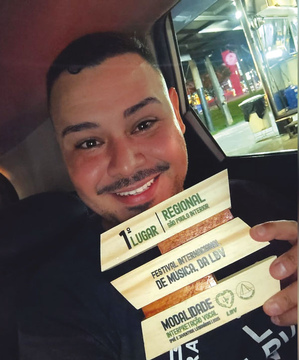 À Gazeta de Vargem Grande, ele explicou que venceu na 50° edição do Festival Internacional de Música da Legião da Boa Vontade, na categoria interpretação vocal, na região do interior de São Paulo. Após, ele entrou na votação popular com o Brasil todo, onde há Legião da Boa Vontade e ficou entre os três mais votados, junto com Nicole Rose de Goiânia (GO) e Sara Monteiro Novo de Assis e Rachel Guarany dos Santos Fernandes de São Gonçalo (RJ).