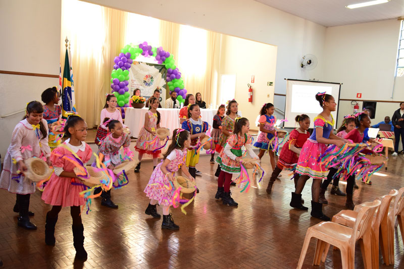 O encontro também contou com uma apresentação cultural junina realizada por crianças atendidas pelos programas sociais vinculados ao CRAS, trazendo um momento de leveza e integração à conferência.