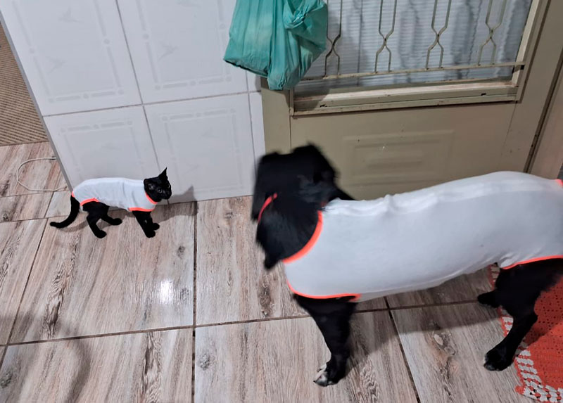 Ele ainda contou que a lembrança marcante que tem com os animais é quando a Chimbica foi castrada. Ela teve que usar uma roupa pós cirurgia e a família precisou colocar uma roupinha cirúrgica no Nick também, que estava com ciúmes da gata.