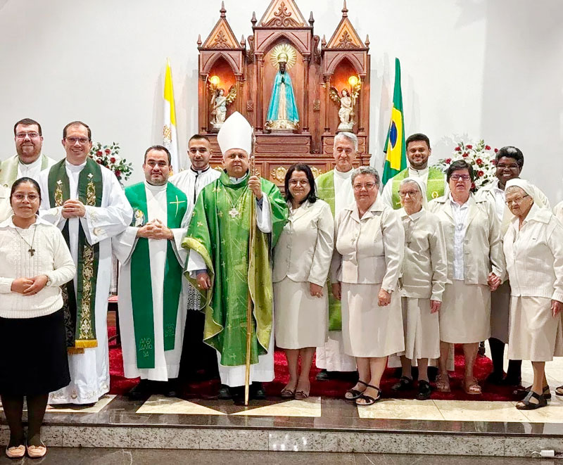 Logo após, às 19h, a Igreja Nossa Senhora Aparecida foi o palco da missa em ação de graças pelos 25 anos de vida religiosa da Irmã Aparecida Donizete de Freitas, que é natural de Vargem Grande do Sul. A celebração foi marcada por momentos de intenso louvor e profundo agradecimento, com a comunidade reunida para celebrar também os 70 anos da presença franciscana na cidade. Participaram da celebração, o bispo diocesano Dom Eugênio Barbosa Martins, os padres Paulo Valim, Richard Strazza, Luís Fernando da Silva e o pároco responsável pela paróquia, padre Antônio Carossi