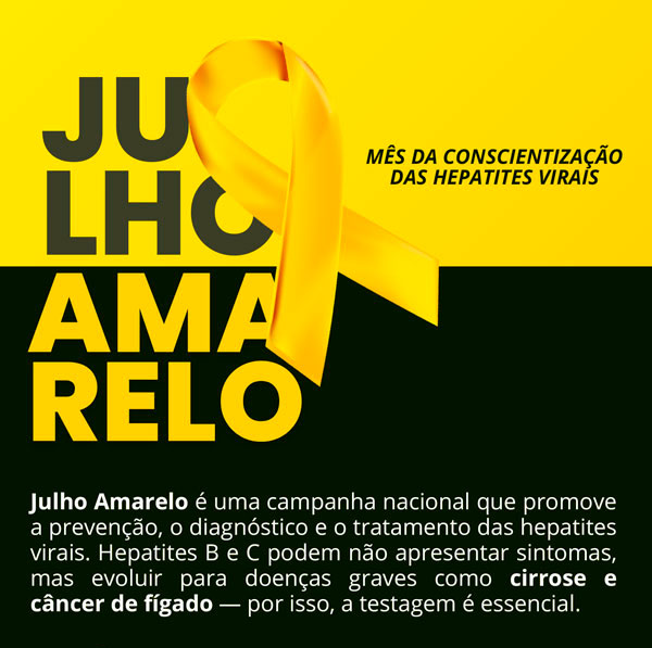 Está sendo realizada pela Prefeitura de Vargem Grande do Sul, por meio do Departamento de Saúde, a campanha Julho Amarelo, voltada à prevenção e combate às hepatites virais, que muitas vezes não apresentam sintomas no início.
