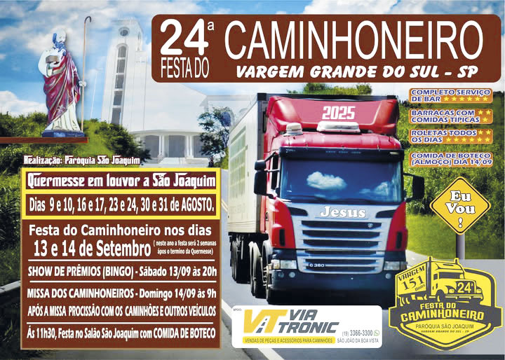 No encerramento da celebração, às 11h30 do domingo, dia 14 de setembro, todos estão convidados para a animada Festa no Salão São Joaquim, que trará como destaque a saborosa comida de boteco, proporcionando um ambiente descontraído e acolhedor para celebrar os profissionais das estradas e a comunidade.