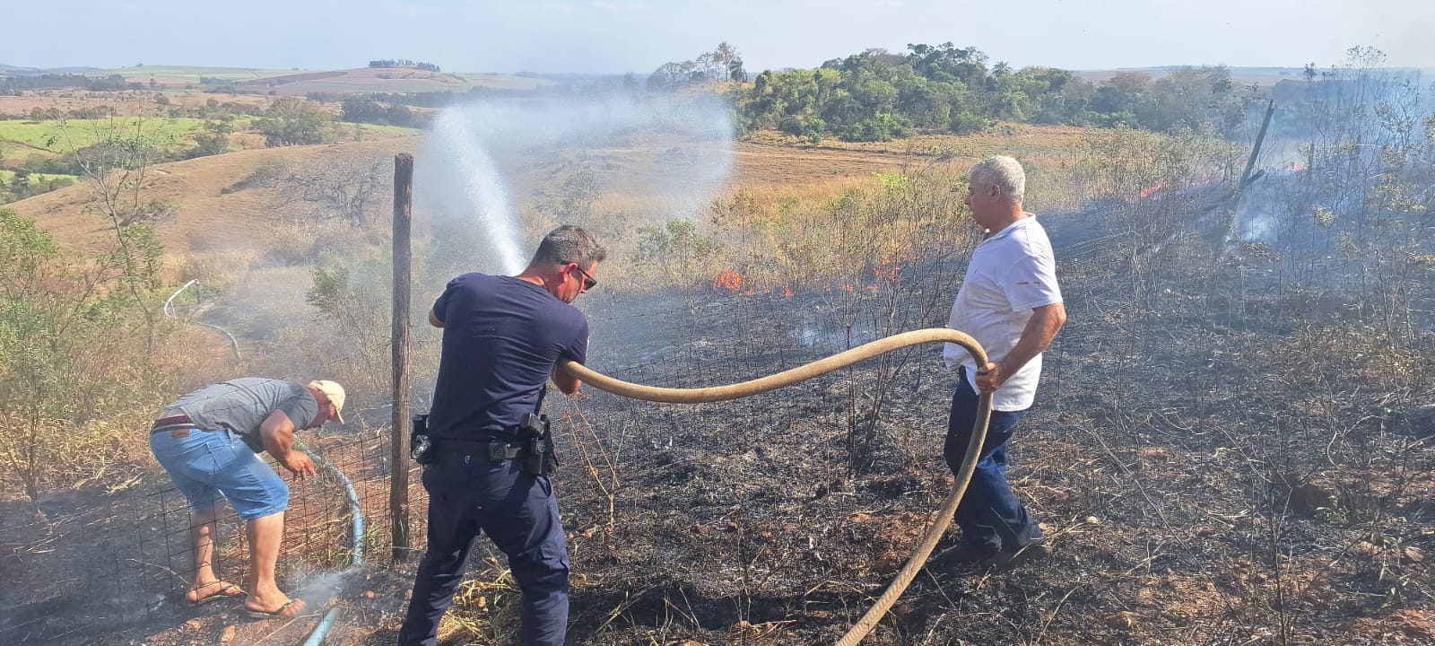 Foi necessário uso do caminhão e caminhonete da Defesa Civil, além da unidade do Corpo de Bombeiros, para combater o incêndio. Moradores de propriedades próximas auxiliaram as equipes no enfrentamento às chamas, até que o Fogo foi debelado e os riscos a residências e a propagação de mais focos fossem eliminados