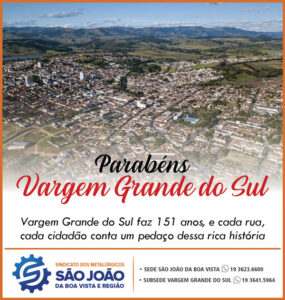 Vargem Grande do Sul comemora seus 151 anos nesta sexta-feira, dia 26 de setembro. O município chamado de Pérola da Mantiqueira, por estar aos pés da Serra da Mantiqueira, também é conhecido por ser um dos maiores produtores de batata do Brasil e por abrigar uma importante indústria de cerâmica. Vargem, também tem se destacado nos esportes e começa a dar passos cada vez mais firmes na estruturação de sua carreira turística. No entanto, o que sempre foi uma constante em sua história foi a capacidade empreendedora de seu povo, que com milhares de microempreendedores individuais, micros e pequenas empresas, sustentam o crescimento da cidade e seguem tonando Vargem grande.