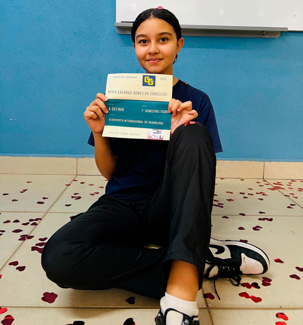 A Escola Estadual Gilberto Giraldi – Ensino Integral de Vargem Grande do Sul comemorou a aprovação de mais uma aluna para o programa Prontos pro Mundo, da Secretaria de Estado da Educação (Seduc-SP), que selecionou 500 estudantes de todo Estado para um intercâmbio em um país de língua inglesa. A jovem Maria Eduarda Gomes da Conceição, 1ª série do Ensino Médio, foi aprovada e deverá embarcar no primeiro semestre de 2026 para três meses de estudo de inglês em uma High School no Canadá.