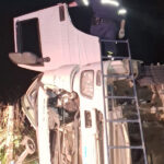 Uma equipe do Corpo de Bombeiros também foi acionada, pois havia vazamento de gás proveniente da cozinha do caminhão. O veículo foi removido da pista pelo guincho acionado pelo DER.