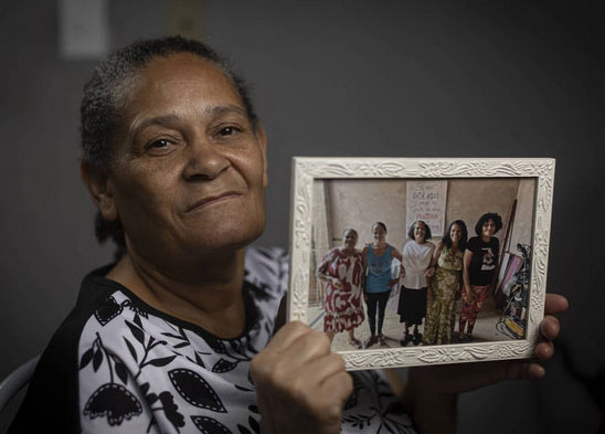 Marta mostra a foto do reencontro com as irmãs, em Casa Branca. Foto: Reprodução Folha de São Paulo