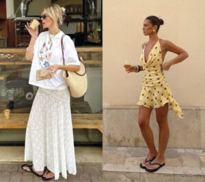 Grunge: xadrez, flanela e jeans destroyed repaginados em versões mais fluidas e elegantes. Balletcore: romantismo delicado, com tules, laços e sapatilhas, trazendo feminilidade e sensualidade sutil.