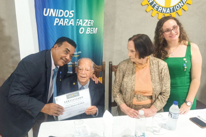 A noite também foi marcada por uma homenagem especial a Paulo Ribeiro, um dos fundadores do Rotary Club de Vargem Grande do Sul, que completa 57 anos de história no município. Aos 94 anos, comemorados na semana passada, Paulinho emocionou os presentes ao interpretar a canção “Noite Feliz”, acompanhado de sua esposa, Dulce Aliende, em um momento de grande sensibilidade e simbolismo, que traduziu o verdadeiro espírito natalino.