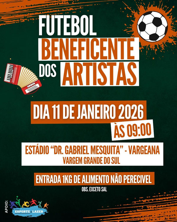 Além de incentivar a prática esportiva, os organizadores explicam que o Futebol Beneficente dos Artistas tem como objetivo unir a comunidade em torno de uma causa nobre, proporcionando um momento de lazer para toda a família. Mais informações sobre o evento, participantes e programação complementar podem ser encontradas pelas redes sociais do evento, no perfil @futebolartistas.