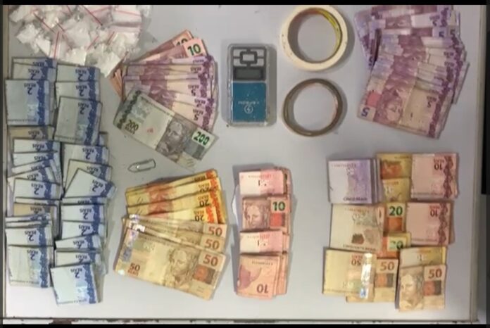 De acordo com o relatado pela PM, era pouco antes das 10h quando a equipe realizava patrulhamento pelo bairro. Certo momento, os policiais avistaram dois indivíduos saindo de um imóvel na Rua Carino José Bernardes. Ao perceber a aproximação da viatura, um dos envolvidos tentou esconder um objeto na cintura, enquanto ambos tentaram escapar saindo em direções opostas. Os policiais conseguiram abordar apenas um dos suspeitos, um adolescente, e com ele foi localizada uma pochete com cerca de R$ 10 mil, além de 12 porções de cocaína e um aparelho celular.