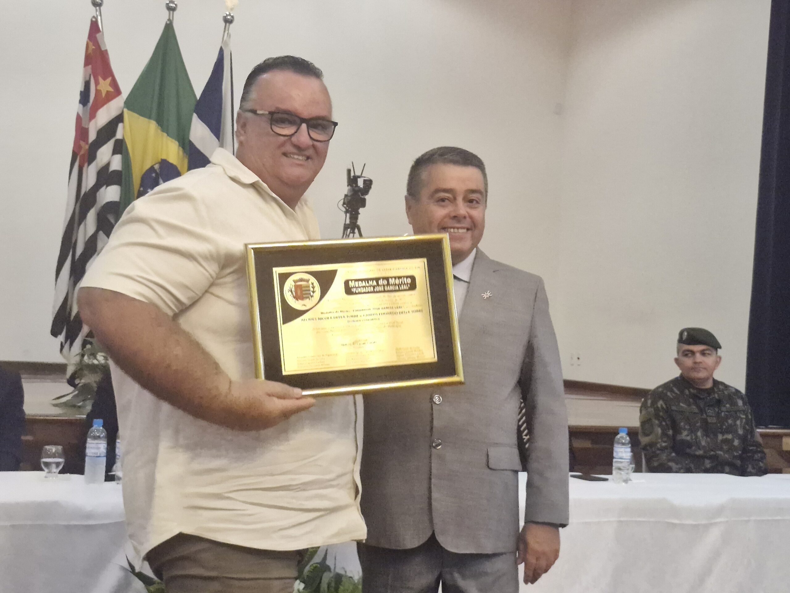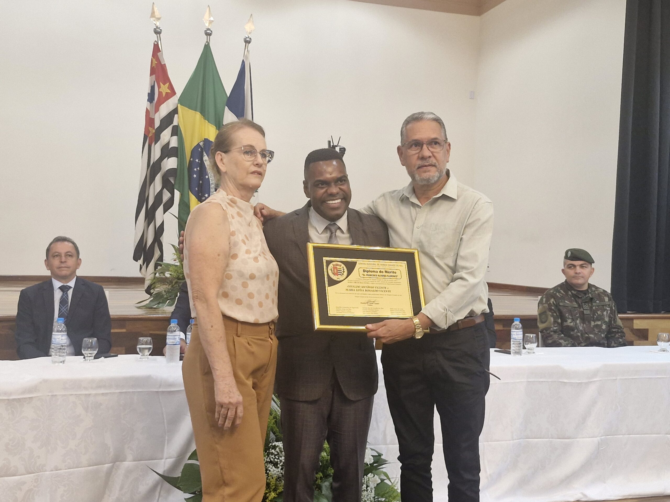 O prefeito Celso Luís Ribeiro (Republicanos) não pode comparecer ao evento, mas enviou seu reconhecimento e respeito a todos os homenageados, que foi lido pelo mestre de cerimônia Maicon Alcântara. “As honrarias concedidas refletem o empenho, dedicação e o compromisso de cada um com o trabalho desenvolvido em prol do município, contribuindo de forma significativa para o crescimento, para o desenvolvimento e o fortalecimento de nossa cidade”, afirmou o prefeito.