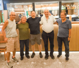 Os colegas Mário Nakamura; Koshin Uehara; Paulo Kitamoto; Mario Poggio e Nélson Koiti Kawago – na foto da esquerda para a direita, que estudaram no período de 1975 a 1979, na Faculdade de Administração, Ciências Contábeis e Economia São Luís, em São Paulo, se reuniram na terça-feira, dia 16, no Restaurante Madeiro, no Shopping Santa Cruz para relembrar os bons tempos e colocar as conversas em dia