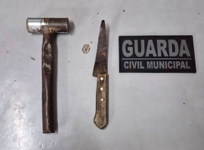 Segundo relato da vítima aos guardas civis, o companheiro adentrou o imóvel portando um martelo e uma faca, com os quais passou a agredi-la e ameaçá-la. O homem também danificou o armário da cozinha com o objetivo de subtrair alimentos para posterior venda.
