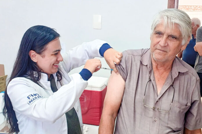 A imunização é destinada aos grupos prioritários e, para receber a dose, é necessário apresentar CPF, Cartão do SUS e Carteira de Vacinação.