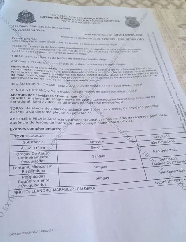 Após o óbito, o médico não emitiu a Declaração de Óbito (DO), orientando a família a procurar a Polícia Civil. O caso foi encaminhado ao Instituto Médico Legal (IML).