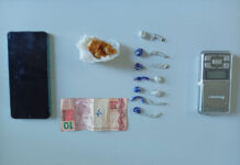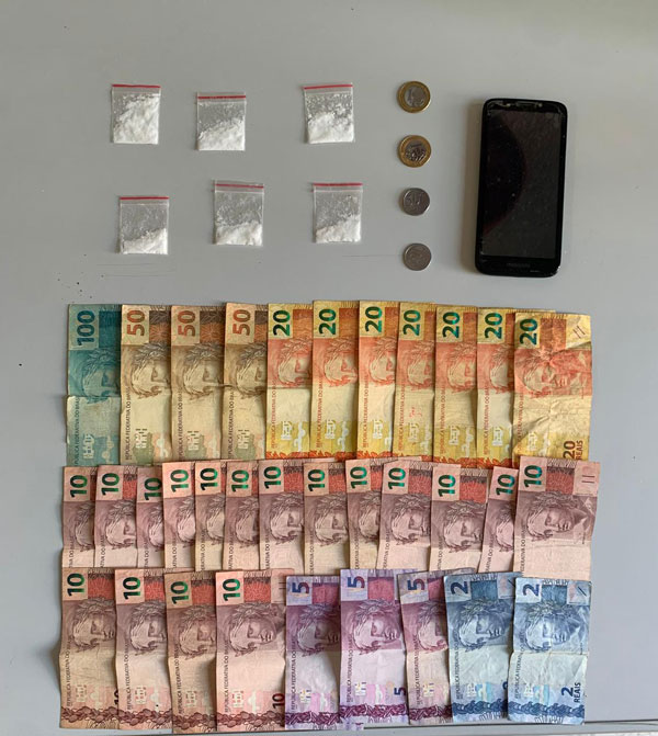 Com a aproximação da viatura, o suspeito tentou mudar bruscamente o sentido da moto, demonstrando nervosismo, o que motivou a abordagem. Na busca pessoal, foram encontrados no bolso de sua calça seis porções de cocaína embaladas em ziplock, um celular da marca Motorola e R$ 582,00 em cédulas e moedas.