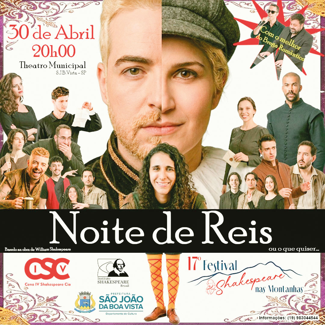 Três atores de Vargem Grande do Sul integram o elenco de “Noite de Reis”, montagem da escola de atores Cena IV, de São João da Boa Vista, baseada na comédia de William Shakespeare. Marcelo Fiorini, Mariana Teodoro e Marcus Vinícius Monteiro participam de um espetáculo que transporta o clássico elizabetano para uma leitura brasileira contemporânea.