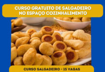 O Espaço Cozinhalimento ministrará o curso de salgadeiro de 26 a 30 de agosto, das 13h às 17h. No total, há 15 vagas disponíveis para o curso, que estão sujeitas a avaliação social.