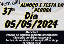 O tradicional almoço e festa do Peroba, que chega em sua 37ª edição, acontecerá no dia 5 de maio, um domingo, e contará com show ao vivo de Márcio Rossi e Juninho.