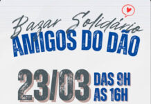 Neste sábado, dia 23, acontece o Bazar Solidário Amigos do Dão, na Praça Capitão João Pinto Fontão, a Praça da Matriz, no período das 9h às 16h.