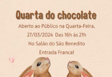 O Conselho da Mulher Empreendedora e da Cultura (CMEC) de Vargem Grande do Sul realizará a Quarta do Chocolate na próxima semana. O evento será na quarta-feira, dia 27, das 16h às 21h, no Salão de Festas São Benedito.