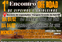 Neste sábado, dia 3, e no domingo, dia 4, será realizado o 1º Encontro Off Road de Jipeiros e Gaioleiros no Recinto de Exposições em Vargem Grande do Sul.