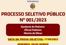 A prova objetiva do Processo Seletivo Público nº 001/2023, para os empregos de Ajudante de Pedreiro, Oficial Pedreiro e Mestre de Obras será neste domingo, dia 17, às 9h. São seis vagas para ajudante de pedreiro, seis vagas para...