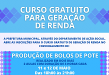 A Prefeitura Municipal de Vargem Grande do Sul, através do Departamento de de Ação Social, abrirá as inscrições para o curso gratuito de geração de renda no Cozinhalimento. As inscrições para o curso de produção de bolos...