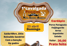 A 1ª Cavalgada do Pesqueiro Nossa Senhora Aparecida será neste domingo, dia 23. A saída será às 10h, no Sítio Reinaldo Sandrini com benção do padre.O evento está sendo organizado por José Marcos Cossulim, conhecido como Marcos...