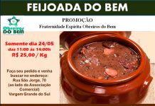 A Fraternidade Espírita Obreiros do Bem está fazendo uma campanha para arrecadar recursos para assistência social de famílias em condições de vulnerabilidade. A campanha Feijoada do Bem acontecerá no dia 24 de maio.