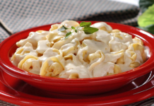 Tata RanzaniIngredientes800g de Capeleti fresco (ou Ravióli), 300g de Lombinho Canadense picado, 300g de mussarela ralada, 1,5 litro de leite, 250ml de suco de laranja, Sal, Tempero em pó, 1 lata de milho verde, 2 colheres de sopa de...